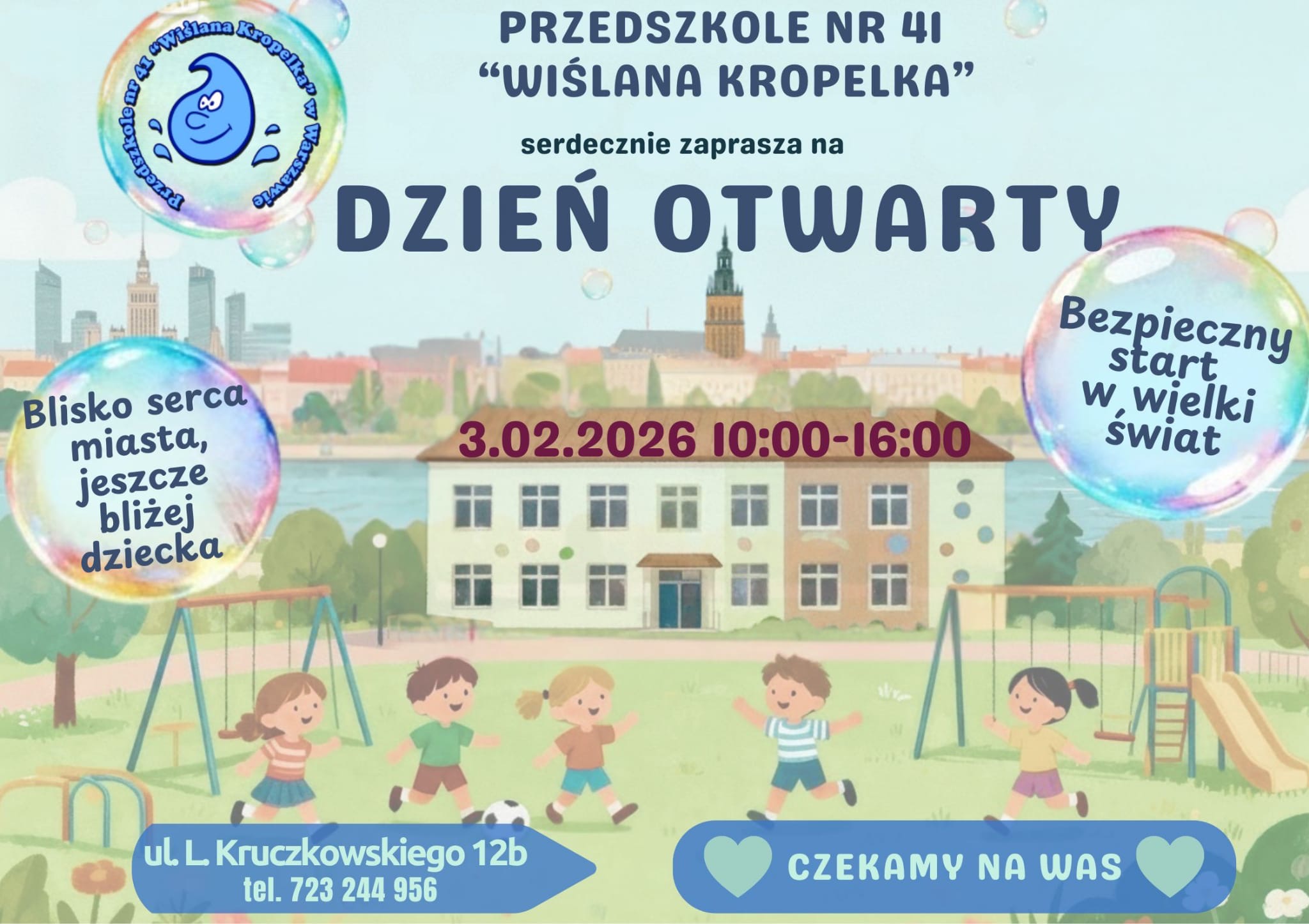 Serdecznie zapraszamy wszystkich zainteresowanych, przyszłych Przedszkolaków i ich Rodziców na dzień otwarty, który odbędzie się 3 lutego od godziny 10.00 do godziny 16.00.
