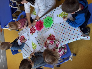 Pod koniec września przywitaliśmy panią Jesień. Śpiewaliśmy, tańczyliśmy, oglądaliśmy liście i obserwowaliśmy jakie kolory pojawiają sie na drzewach. Wiemy już, że zanim liście opadną z drzew będziemy mogli podziwiać je w kolorach czerwieni, złota i brązu.